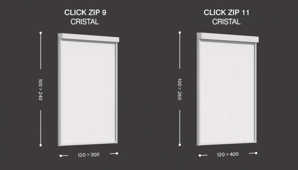 Kasetni roloji CLICK-ZIP CRISTAL so v celoti zasnovani za lokacije z visokimi vetrnimi obremenitvami in za namestev na prostem ( zapiranje nadstreškov, pergol, lož in drugih odprtih površin ).