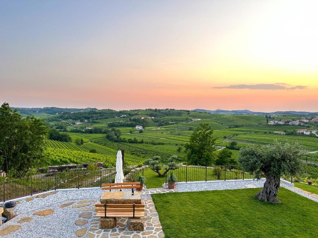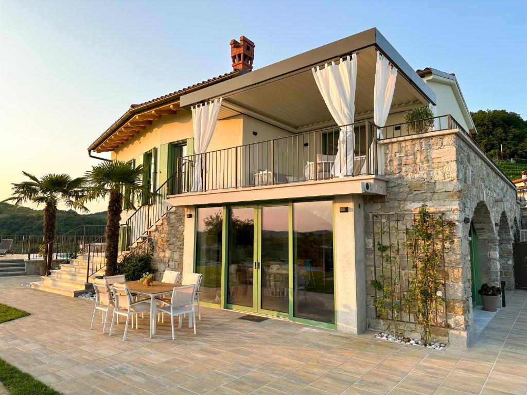 Integrirana bioklimatska pergola JOY-WALL in dizajnerska kasetna tenda NODO na turističnem objektu Chic Vineyard Villa - Šlovrenc / Goriška brda.