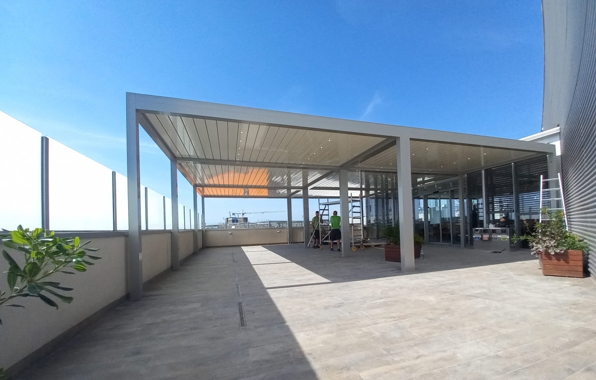 Bioklimatske pergole JOY na gostinski terasi restavracije SPAR - Park Center Koper; Ankaranska cesta 3a - Koper.